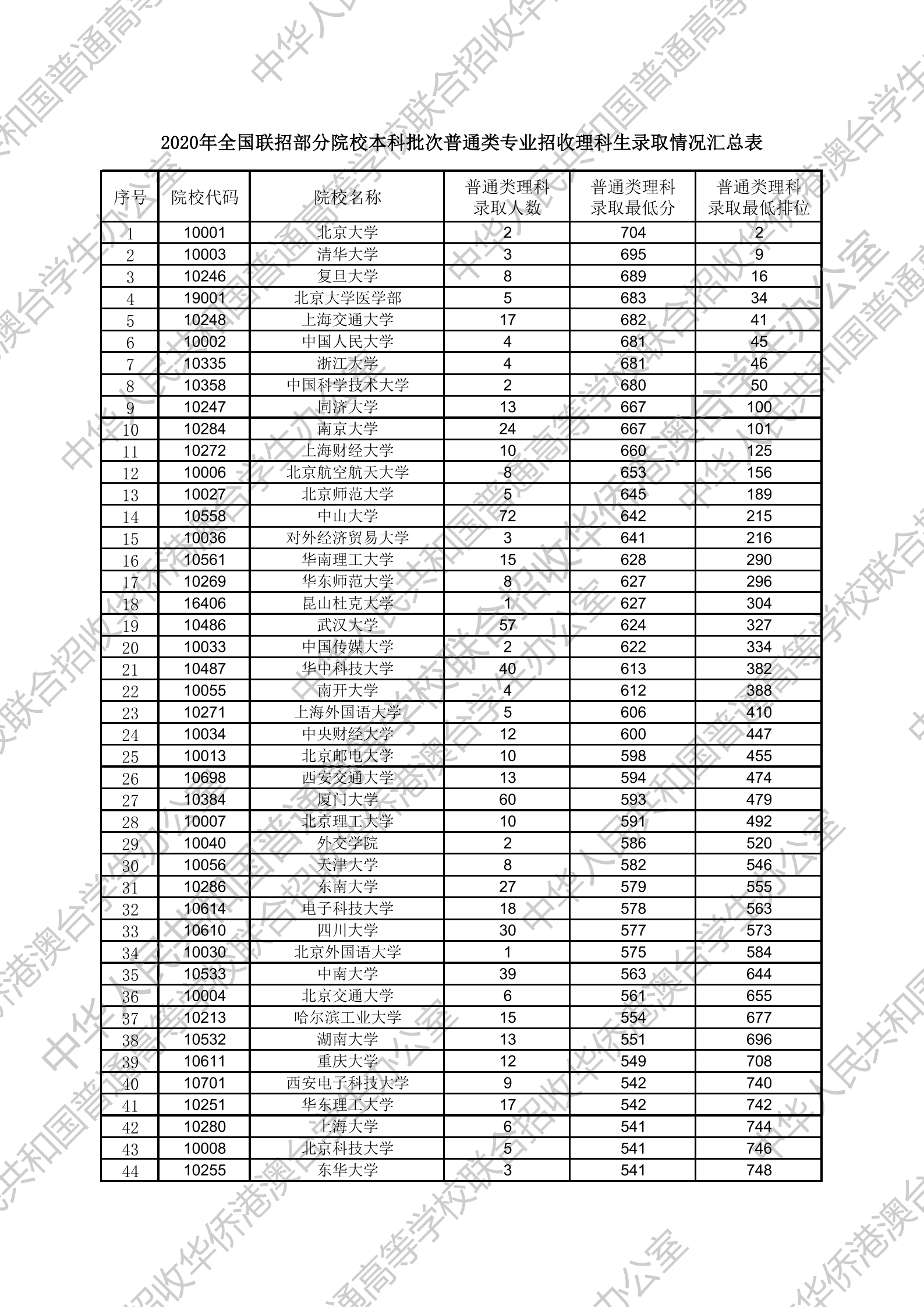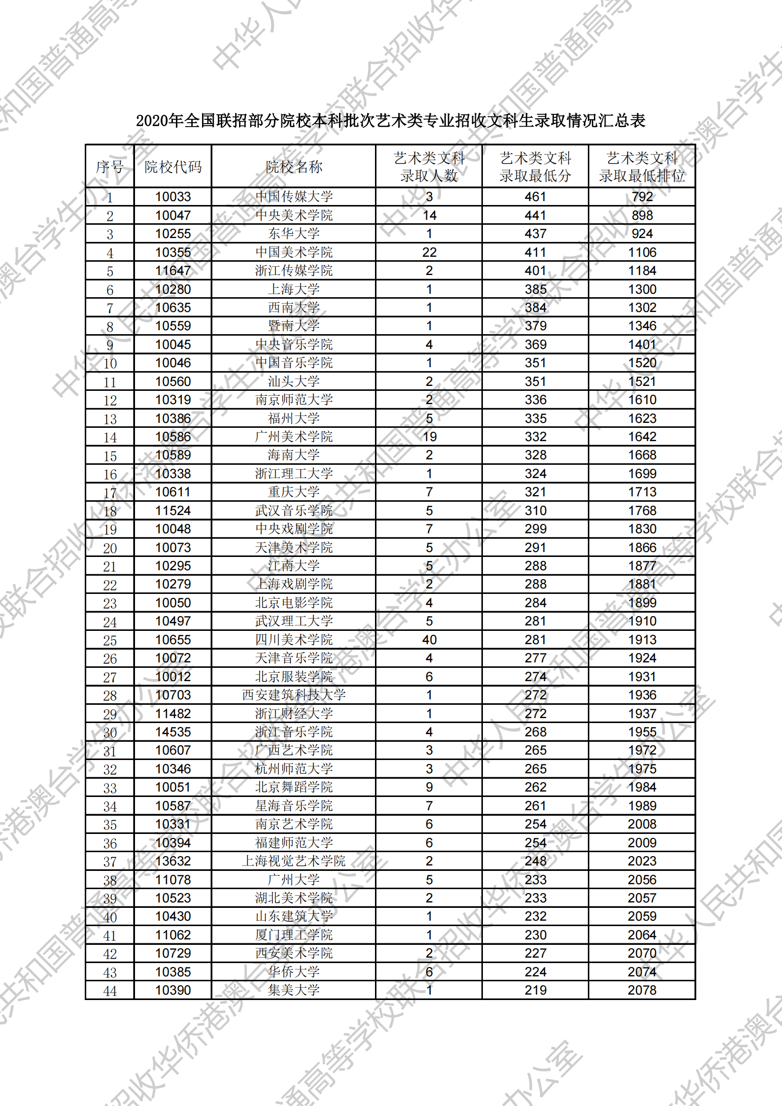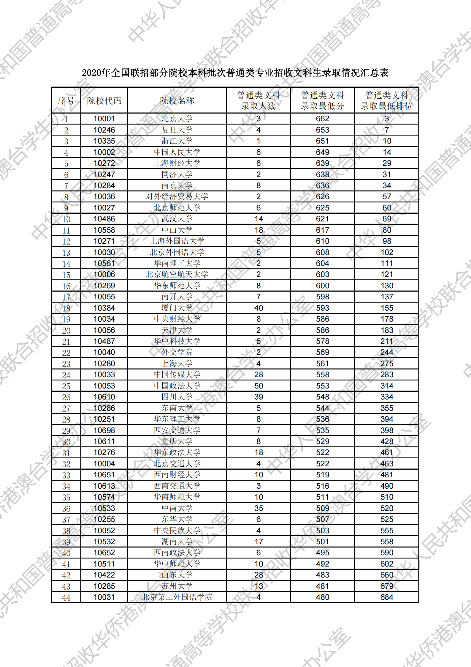 2020全国联考分数线