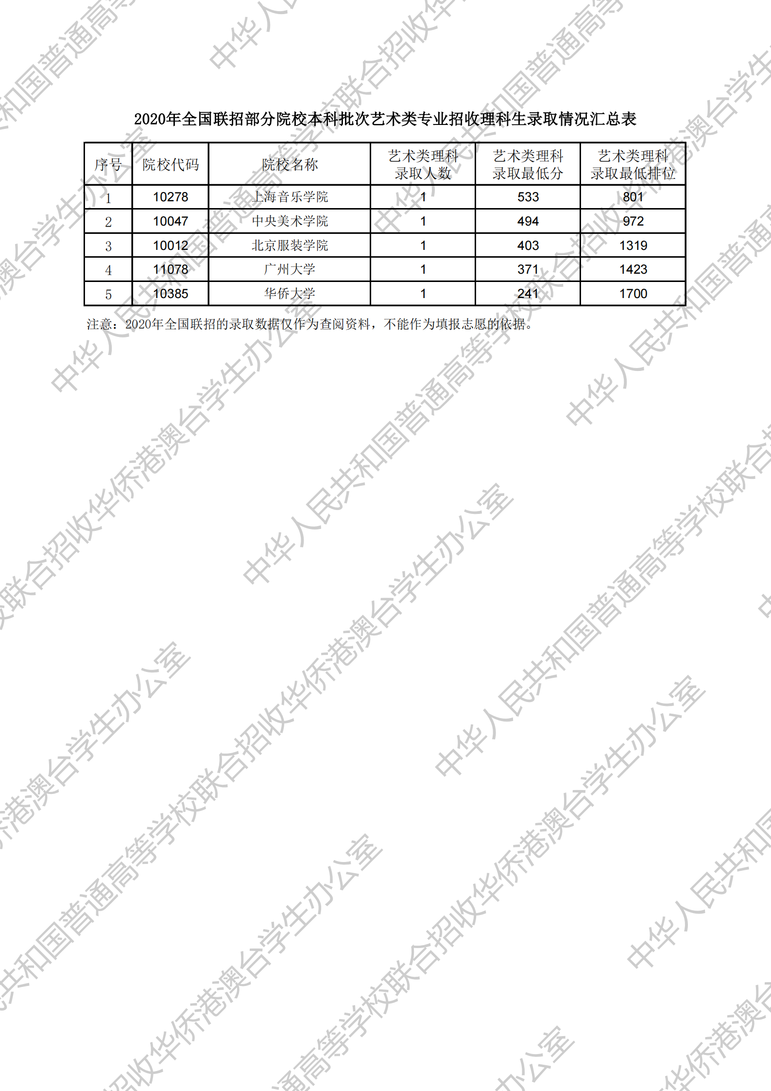 2014年中华人民共和国普通高等学校 联合招收华侨...
